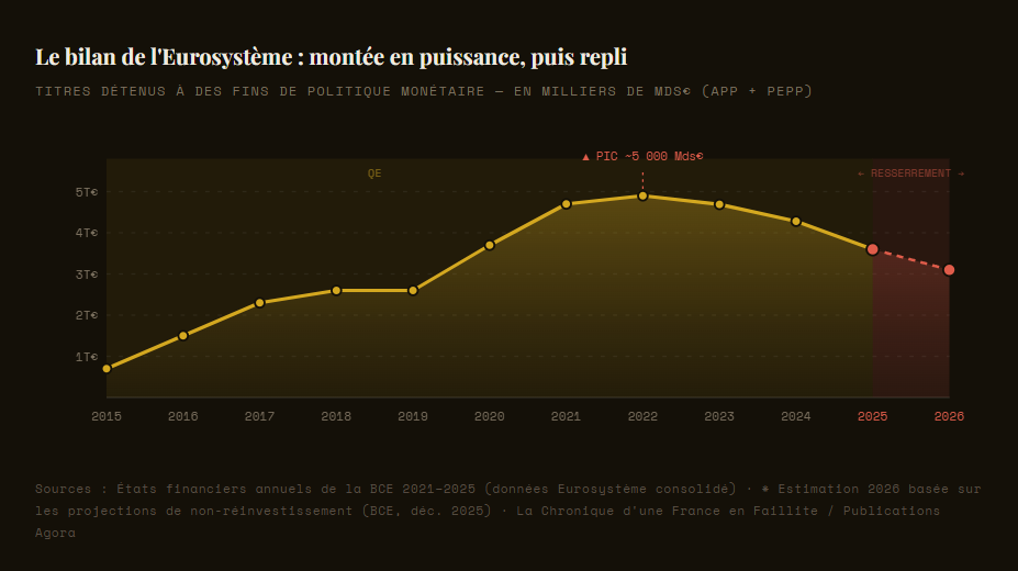 Il y a des ruptures qui ne font pas de bruit. Pas de conférence de presse dramatique, pas de déclaration fracassante. Juste une ligne dans un communiqué de Francfort, sobre et technique, qui résume en une phrase ce que peu de Français ont réellement mesuré : depuis janvier 2025, la Banque centrale européenne ne rachète plus la dette française. Et en 2026, elle va en remettre plus de 100 Mds€ sur le marché, sans les remplacer.